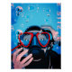 A vibrant digital illustration of a shocked scuba diver underwater, surrounded by bubbles. A bold and expressive artwork perfect for ocean and adventure lovers.