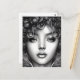 Fabulous postcard with black and white digital illustration featuring a portrait of a beautiful young black woman with delicate spiral curls