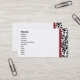 Striking elegant business card with sharp black and white damask print bordered by deep red front and back.