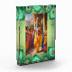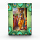 Embrace the serenity of this picturesque scene as Lord Krishna, adorned in his timeless traditional attire, graces the temple courtyard on a sunny morning. A playful smile adorns his face as he greets a gathering of women drawing water. This enchanting artwork captures the essence of divine moments, perfect for adorning your space with grace and spirituality. Bring the allure of Lord Krishna's presence into your life with this exclusive print.