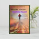 A contemporary baptism invitation featuring a bold cross at the center of a dynamic, glowing light-burst design. Fully editable for your son’s special day and subsequent reception details.