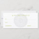 A doily-like ornament draws the viewer into the center of this rack card using a clean type treatment that suggests a serene environment. The reverse is against white for ease of writing with the rosette printing in the back as a watermark. Fill in the lines as you like. Use as a gift certificate for a salon or spa, a massage therapist or wellness professional, or a retail shop focusing on gifts, apparel or accessories. Available in alternate colors with matching products.