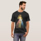My 11 yo wore adult XL (5’7” 165#). The 8yo is small framed. She wore adult small and tied it in the back. Grandma wore adult large with long sleeve shirt underneath. Tall girl adult medium. Dark haired male adult large. Good quality dark Heather gray, Gildan brand shirt. -it was next up from basic choice and cost about $20 per shirt. Not too thick or thin. Washed and dried well, no major shrinkage. Not see-through. Can wear a bra under it fine. Screen print is just as shown and well done, front and back.