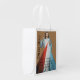 I own a lot of reusable grocery bags, but this one holds its box shape and simply stands up on its own even if there is nothing in it. Its stiffer than your regular reusable bag too, and the material is water resistant. I poured water on the exterior and it didn't penetrate inside to the other side. I'm buying a couple more. Wish I knew how durable these bags were or I would have purchased a few more with my initial order. I also like how it folds and buttons up when not in use, making it easy to put into a handbag or luggage. I haven't used this bag yet, as I purchased it for travel use, like when you're at the airport and need to small sturdy bag to place any airport purchases in, like food, souvenirs etc. I can tell you when you first see this bag, it looks very cheap, but after closer inspection of the material and the seams its a very sturdy reusable bag. I tested it out by putting some really heavy objects inside and I could not observe any stress to the bag at all. Another thing I like about it, is the fact the medium size that this is makes it easy to just carry it in your hand without the bottom of the bag scraping the ground, like most other bags do when you're short. That alone, deserves 5 stars. I just wish there were more colors to choose from! The PDX Airport Carpet printing looks just like the photo, and using this bag during travel might be a conversation piece when/if a native from Oregon happens to see it.