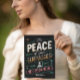 A black graphic postcard featuring the words The Peace of God with a unique design.