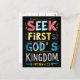 A vibrant and inspirational TEXT featuring the words Seek First Gods Kingdom from the Bible. The design includes intricate typography and religious symbolism. Divine Quest: Seek First Gods Kingdom