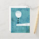 Diving Board abstract features white geometric shapes suggesting a ball bouncing off a diving board with black dots implying trajectory. All over a blue painted background.
