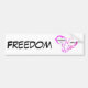 Divorced freedom and happiness bumper-sticker with a pink open handcuff representing the single and happy life