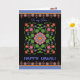 A pretty Diwali Greeting Card for a Son, with a brightly colored Rangoli pattern and a border of Orange, Pink and Blue Flowers and a Rangoli motif, from a hand-painted paper collage by Judy Adamson. Part of the Posh & Painterly 'Rangoli' collection.