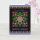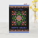 A pretty Diwali Greeting Card for a Mother, with a brightly colored Rangoli pattern and a border of Orange, Pink and Blue Flowers and a Rangoli motif, from a hand-painted paper collage by Judy Adamson. Part of the Posh & Painterly 'Rangoli' collection.