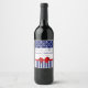 DIY Background Color: Preppy Navy Blue and White Anchors and Stripes, Red Bow Ribbon Party Wine Label