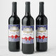 DIY Background Color: Preppy Navy Blue and White Anchors and Stripes, Red Bow Ribbon Party Wine Label