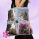 DIY cat photo collage with quote gray tote bag