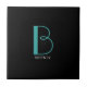 DIY Large Monogram & Name, Teal/White Text, Black Ceramic Tile