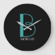 DIY Large Monogram & Name, Teal/White Text, Black Clock