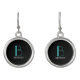 DIY Large Monogram & Name, Teal/White Text, Black Earrings