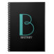 DIY Large Monogram & Name, Teal/White Text, Black Notebook