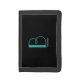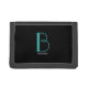 DIY Large Monogram & Name, Teal/White Text, Black Trifold Wallet