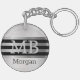 DIY Monogram/Name Bk/Silver Stripes Brushed Silver Keychain