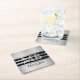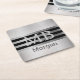DIY Monogram/Name Bk/Silver Stripes Brushed Silver Square Paper Coaster