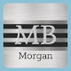 This Silver and Black Stripes on Brushed Silver design with large monogram is a powerful design that is sure to get attention. Add your Monogram and name.