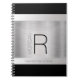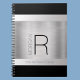DIY Monogram Name, Black Grey Text, Brushed Silver Notebook