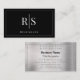 This elegant black front and brushed silver design on back with white monogram and name with border will get their attention. Works well for many professions: Interior Designers, Consultants, Hair and Makeup Artists, Corporate Professionals, Realtors, Sales Associates, Estate Planners and more. DIY Monogram, name, occupation, address, phone/cell, website and email.