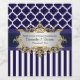 Romantic Vintage Look White Stripe & Moroccan Quatrefoil Patterns with DIY Color Background (Initially set to Midnight Blue), Blue Ribbon - Wedding Wine Label / Bottle Label