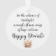 A luminous diya glows within an ornate golden holder, its flame casting sacred warmth across a tapestry of hand-painted florals. Jewels and intricate patterns shimmer like blessings, while golden specks dance through the air like whispered prayers. This image evokes the soul of Diwali—a celebration of light triumphing over darkness, of beauty, gratitude, and the eternal rhythm of rebirth. The accompanying quote,("In the silence of twilight, a single flame sings of hope reborn.") printed on the reverse, deepens the emotional resonance, offering a poetic reflection to carry the spirit of the festival forward.