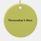Lightweight, smooth, pure white ornament with nice sheen. Perfect size to be seen from across the room ... and to attract closer inspection! Price was great for ordering enough for the whole family! Clear, bold black design just as requested. Matches the order exactly. Just so nice!