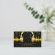 Clean deejay dj music card with headphone in gold on black matte surface is present in elegant way. Glittering confetti on black matte with golden headphone for deejay.