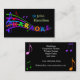Colorful business card for karaoke disc jockeys. Design has music notes and staffs. Fully customizable to add your business details. delightfuldoodles.