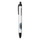 Very nice blue, or black ink pen. I will be buying more. The print was fine. I can easily see the print. The flowers look great.