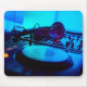 This mouse pad has a picture of a deejay turntable and mixer on it.