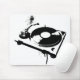 Deejay DJ Turntable mouse pad with a black image of spinning vinyl on the deck.