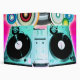 DJ Turntable with vinyl music albums records for disc jockey with colored circles and balls pop art.