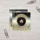 Luxurious stylish cover based on black and gold colors. Centered golden black record plate on DJ set. Space for QR code is included to make your card digital.