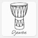 A nice design of a Djembe. Black and white. With stylized "Djembe" text.