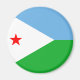 The national flag of Djibouti features two equal horizontal bands of blue (top) and green with a white isosceles triangle based on the hoist side bearing a red, five-pointed star (representing the areas Somalis live in the region) in the centre. These five areas are British Somaliland and Italian Somaliland (Somalia), French Somaliland (Djibouti), the Ogaden, and the Northern Frontier District. The colours used can be seen to symbolise the earth (green), the sea and sky (blue) and peace (white), with the red star representing unity. It was hoisted on the day of the independence of Djibouti on 27 June 1977. There is a red five-pointed star on Djibouti's white triangle.