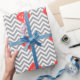 Dk Gray Lg Chevron Coral Red Quatrefoil 3 Monogram Wrapping Paper