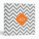 Dark Gray and White Large Chevron ZigZag Pattern, Pumpkin Orange 3 Initial Monogram Label