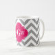 Dk Gray Lg Chevron Raspberry Quatrefoil 3 Monogram Coffee Mug