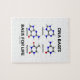 Showcase your biochemical attitude with a dose of educational, scientific fun with this jigsaw puzzle featuring the four nucleotide bases of deoxyribonucleic acid (DNA) along with the following biological truism saying: "DNA Bases Basis For Life". Featuring the molecular structure of adenine, cytosine, guanine, and thiamine.