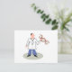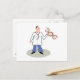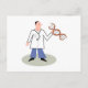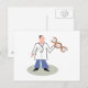 Cartoon illustration of a doctor holding a giant strand of dna. Image available on various gifts and products. Postcards.