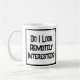 Funny slogan on a mug that says "Do I LOOK remotely Interested". Indicate to people how much you care about whatever they're on about. Black and white bold text.