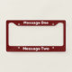 You can create your own message in white text on this dark red license plate frame.