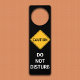 This Do not Disturb Door Hanger Sign features a yellow Sign which reads "CAUTION." The door knob sign is on a black background on which the words "DO NOT DISTURB" are written. These door hangers are bright and get the message across "do not disturb." Copyright Kathy Henis