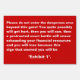 Do not enter, danger, hurt, court case, exhibit 1 - a funny but effective yard sign putting across, in plain English, all the repercussions of entering a property uninvited. A fun, straight, effective warning sign for your yard, lawn, front gate, entrance to your property - factory - farm house - farm land - business premises - private area.