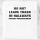 DO NOT LEAVE TRASH IN HALLWAYS RECTANGULAR STICKER