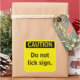 Small Caution Parody Warning Sticker. Do not lick sign. Add some humor to your environmental health and safety program.